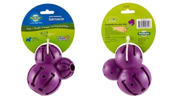 What’s even better than a crazy bouncin’ toy to chase? A crazy bouncin’ toy stuffed with treats! The Busy Buddy barnacle Dog Toy is made of three connected treat chamber balls that give an unpredictable bounce when tossed. Each one can be filled with your pet’s favorite treat and the patented Treat Meter will randomly release one while your dog is playing with it. Smear the bone-shaped grooves with peanut butter for an even tastier toy!