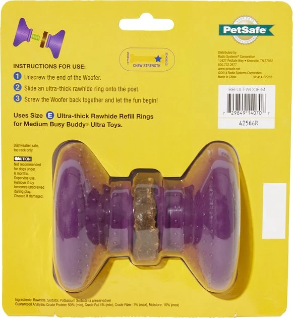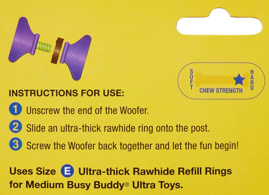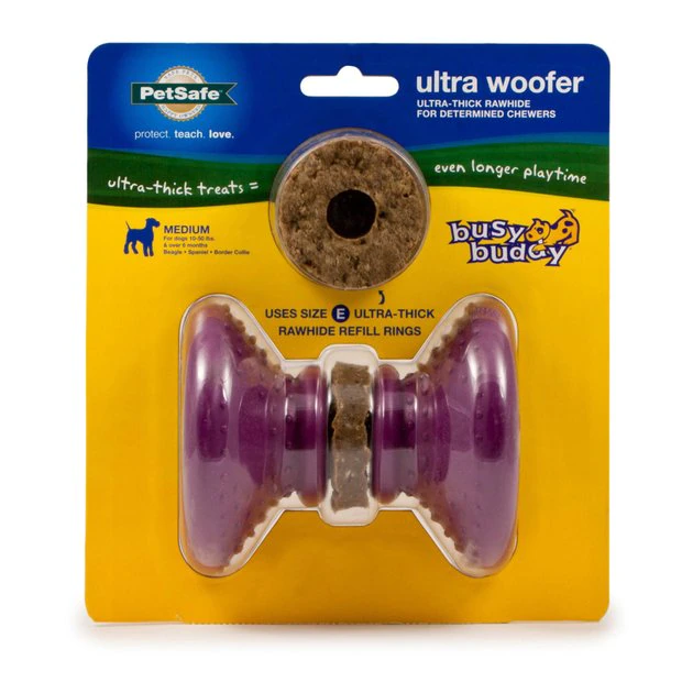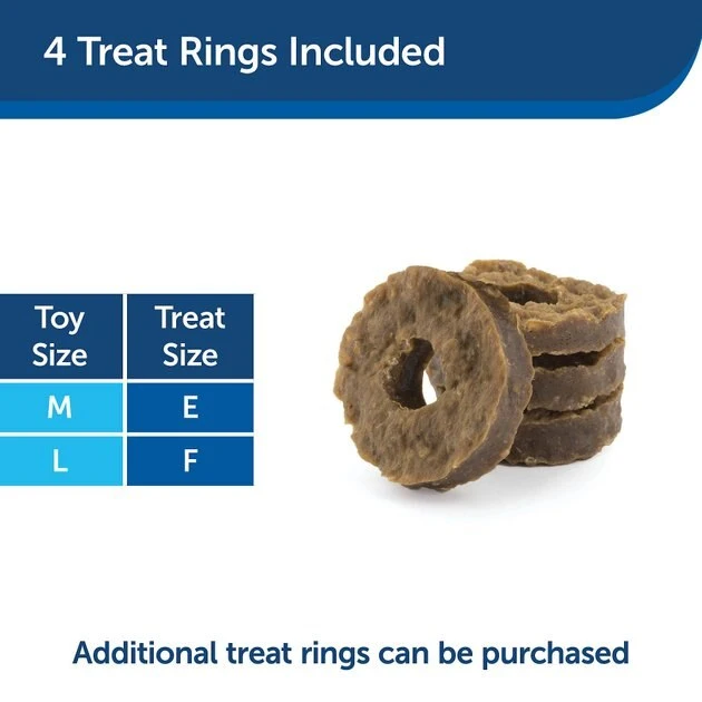 - 2 Ultra-thick rawhide treat rings included. Additional rawhide treat ring refills sold separately