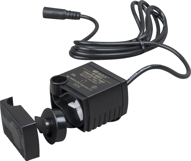 - Water quality can also affect the pump and how effectively it runs. Hard water will cause calcium deposits to build up in the pump’s cavity, blocking the impeller from spinning. If there is evidence of hard water build-up inside the pump, try adding plain white vinegar inside the pump’s cavity (without the impeller) and allow it to soak for 10-15 minutes. Allow the impeller to soak in a separate bowl of vinegar for the same duration of time. Clean all fountain parts in soap and water before reassembling the fountain.
