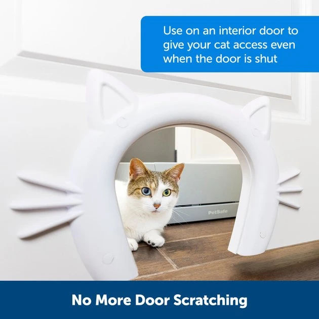 Give your feline friend private access to any room in your home when you install the PetSafe Corridor Interior Cat Door. Easily Secure this pet door to any interior door in your home to give your cat 24/7 access. You can use it to keep the litter box hidden or keep your dog from sneaking kitty kibble. The whimsical cat-shaped design of the door adds a playful and decorative touch.