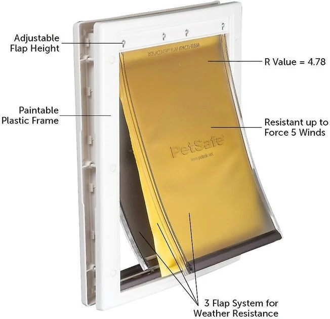 - The thoughtful 3-flap design is rated 3.5 times more energy efficient than most single flap doors.