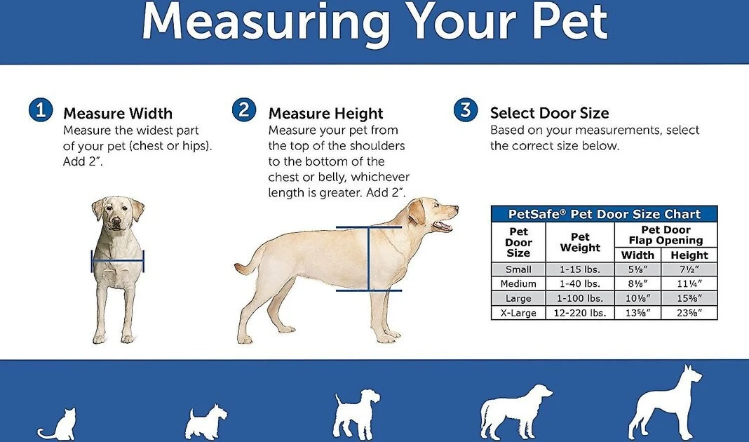 | Size | Flap Opening | Outer Frame | Cut Out | Pet Weight |