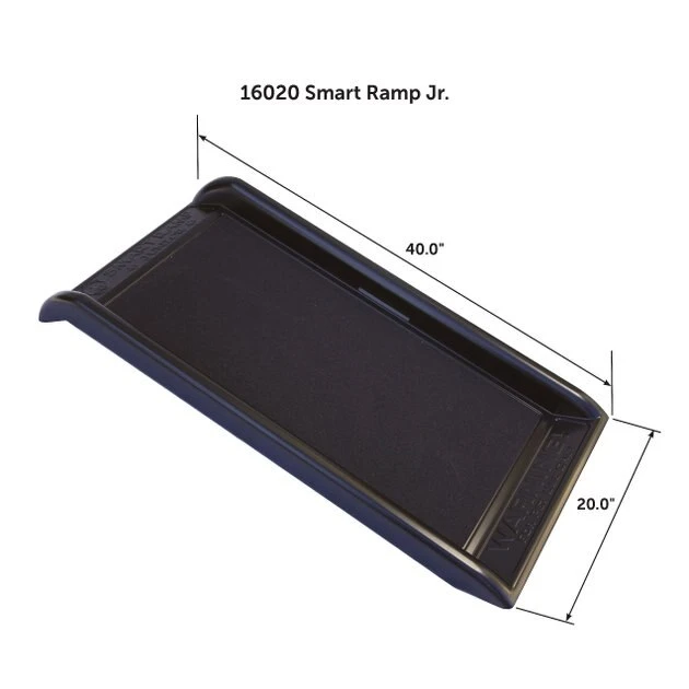 Allow your pet to become familiar with the ramp prior to first use. Lay the ramp flat on the ground and place treats or other items familiar to the pet on the ramp. Offering reassurance and praise, train your pet to walk on it in this position before using in an inclined position. Incline the ramp in small amounts and continue training before using with a vehicle or other higher surface. We recommend holding your pet’s collar or guiding them with a leash as they go up and down the ramp. Make sure pets walk only on the high-traction surface and stay away from the edges of the ramp.