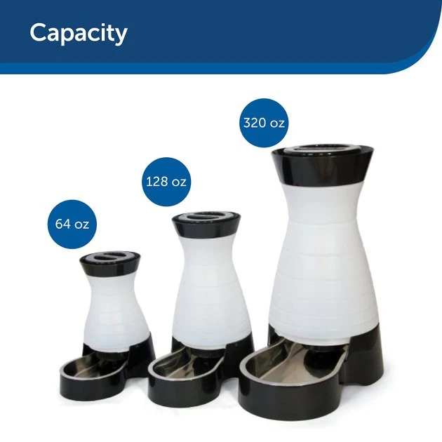 - A flow-control valve fills the bowl as your pet drinks the water, assuring bottled water freshness