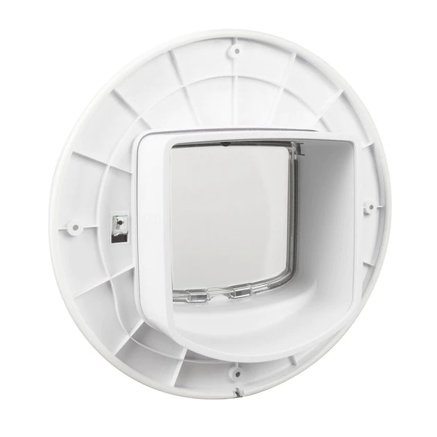 PetSafe Microchip Cat Door Installation Adaptor is designed to use with PetSafe Microchip Cat Door. It allows the door to be installed into metal or glass doors, windows or walls. Installing into a metal door improves the performance of the microchip reader and provides additional support for window and glass installations. Suitable for glass openings 8.3 to 11.2 inches in diameter.