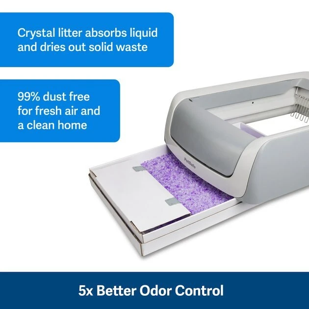 - ScoopFree’s purple crystals feature a soothing lavender scent to help control tough litter box odors.