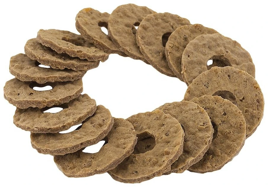 The PetSafe Sportsmen Rawhide Rings Dog Treats comes with sixteen natural rawhide treat rings to refill your PetSafe Sportsmen and Busy Buddy toys. You can make playtime last longer by adding these treat refill rings to your dog’s favorite toy, and the original rawhide flavor is sure to be a hit for your pup. Your dog will spend hours playing in hopes of getting this tasty treat off of the toy and into his belly. These delicious treats are compatible with the Bouncy Bone, Bristle Bone, Nobbly Nubbly, and Jack.
