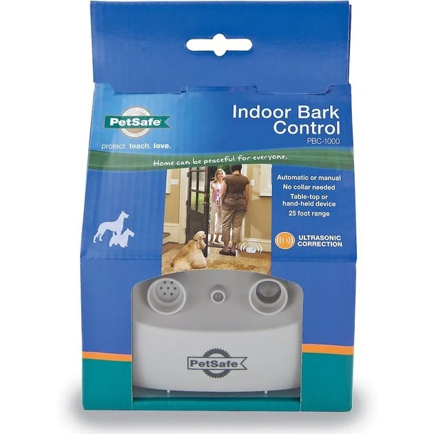 The PetSafe Indoor Bark Control detects barking and sends the ultrasonic tone up to 25 feet.