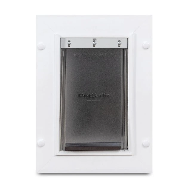 - The double-flap provides weatherproofing and energy efficiency, while a slide-in closing panel adds extra insulation when door is not in use.