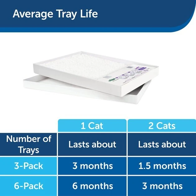 How can I make the trays last longer? ScoopFree litter trays won’t last forever, but each tray can give you up to 30 days of freshness without scooping. Have at least 1 litter box per cat. Many experts recommend having 1 litter box for every cat plus an additional litter box. 3 cats can use the same ScoopFree litter box, but you’ll have to replace the trays more often and you might see litter box bullying.